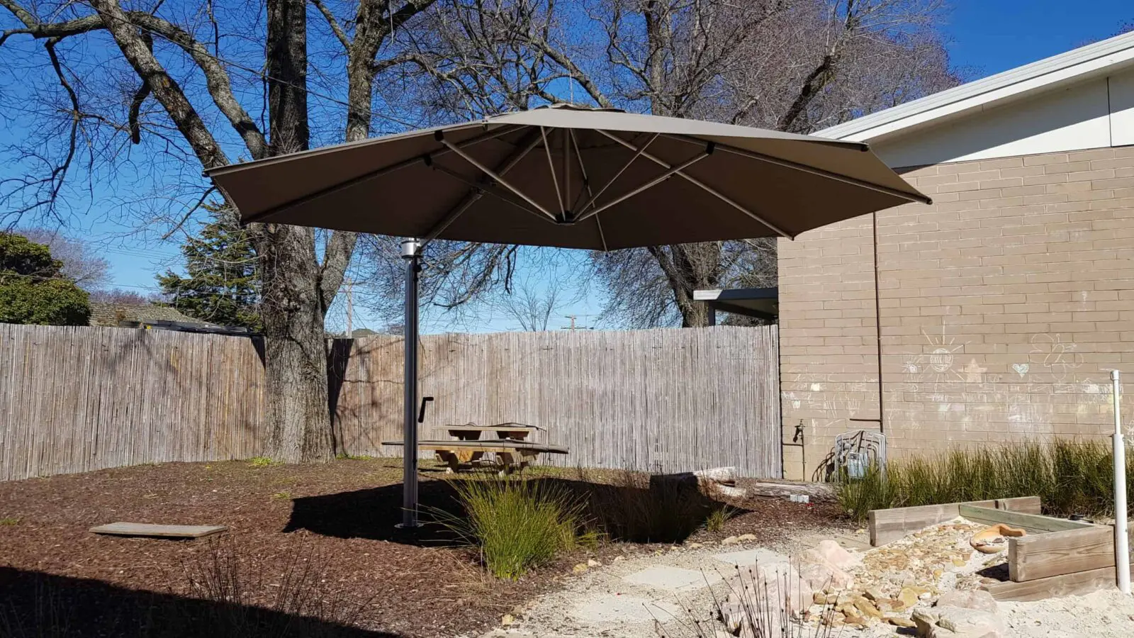 Flexshade® umbrellas offer a practical, permanent solution for businesses, schools, and councils. Available in various sizes, they provide immediate sun protection and enhance comfort without the need for complex setup or collapsible components.